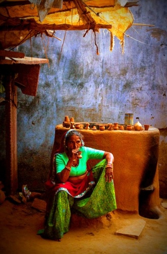 Keliaujant po kaimus, pamatėme kieme, prie kelio, išdėliotus molinius indelius. Pasirodo, tai puodžiaus namas. Prie jo stovėjo ryški moteris...jo žmona. Pasiprašėme pažiūrėti, kaip dirba, leido. Ji prisėdo parukyti... taip tapybiškai.