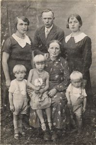 O čia kito senelio...vestuvinė fotografija. 1939-ieji. Taip taip vestuvinė. Tiek užgyveno vaikų su pirmąja žmona, tiek pat užgyveno vaikų ir su mamos (sėdi ant kelių) pamote. Viso 16 vaikų