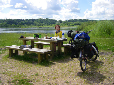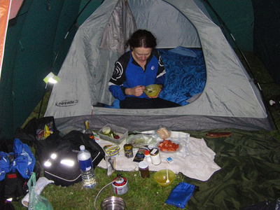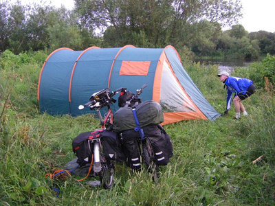 pasiruosimas pirmajai nakvynei prie Nemuno (nuvaziuota 140 km - pas mane pulso nerasta :) tesugebu laikyt maza fotoaparata )
