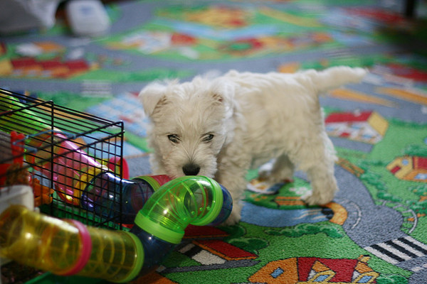 Štai ir įsitaisėm - dar vieną "vaiką" :) Naujasis gyventojas, vakarų Škotijos baltasis terjeras, vardu Boltas (Nojaus išrinktas) apsigyveno pas mus nuo 2009.06.26