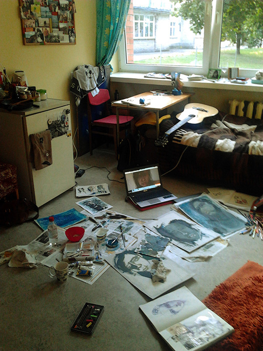 | | Mielai kviečiu : ) Autorius: | 2012 10 30 19:44 | Žiūrėta: 6533 apsilankyti Panevėžio dailės mokyklos baigusiųjų mokinių, dabartinių studentų parodoje, kuri vyks galerijoje ''2-sis aukštas'' , Vasario 16-osios g.10, Panevėžyje, nuo 2012-10-25 iki 2012-11-30 , parodoje dalyvausiu ir aš. : ) trumpas aprašymas: ''.. Tai, ką pristatau šiai parodai yra ko gero daugiau nei asmeniška. Šiuo atveju, savo kūrybos darbais nebandau iškelti jokių visuomenės problemų ir atkreipti žiūrovo dėmesį į tai. Nenagrinėju gilių temų, nebandau šokiruoti ar nustebinti... Nekartą pagalvojau, kad tai mano''apsinuoginimas'' prieš publiką, tave. Trys kompozicijos darbai, tapybos ir piešimo technikos mišinys, pavadinimu '' re-entry'' (iš angl. kl. ''sugrįžimas į atmosferą'') - išgyvenimų, emocijų, jausmų ir sielos būsenos portretai. Į klausimus ''kokių? '' , ''kodėl?'' ir ''dėl ko?'' atsakyti tikrai nenoriu. Visada geriau, kai darbai kalba už tave patį, jeigu kalba. O apie save viešai kalbėti tikrai nemėgstu. Pagalbai - pristatau dar ir tris savo eskizų albumus (piešimo sąsiuvinius, užrašų knygeles, anglų kalboje ''sketchbook''), iš nepaprasto gyvenimo laikotarpio praleisto Portugalijoje. Mano ilgiausiai trukusios kelionės, šalies, kultūros, pasaulio, žmonių ir savęs pažinimo. Juose yra viskas, ką patyriau, jaučiau, mačiau - tai lyg dienoraščio ištraukos, įamžintos kelionės akimirkos, įvairiausi apmąstymai, bandymai, juose - netobuli, neužbaigti, ekspresyvūs ir gyvi eskizai, tiesiai iš širdies gelmių... Juk juos darydama, tikrai negalvojau, kad kada nors juos matys kažkas kitas, išskyrus mane. Kodėl nusprendžiau taip apsinuoginti?... dar ir pati nelabai suprantu. Ką gi.. Kelio atgal nėra. O Jums linkiu, gražios kelionės. ...'' o dabar akimirkos iš to, kaip tai parodai ruošiausi.. (my lovely lonely room in working mood/ ) : )))