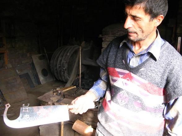 Geriausias kaimo kalvis. Padaro viską, ko paprašo žmonės. Džiaugiasi, kad gali dirbti savo malonumui, bet truputį liūdi, kad sūnus jo amato jau nebenori perimti. Ant savo peilių, žirklių ir kitų dirbinių mėgsta palikti "parašą" - savo arba savo tėvo prekės ženklą.