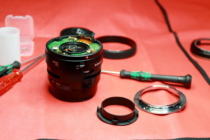 Tai va, susirgo ir mano 50tinis chroniška liga, pradėjo strigti fokusas. Normalūs žmonės tuoj bėgtų į garantinį, na bet aš juk ne toks :D, man gi baisiai idomu kas ten viduj gyvena :D. Taigi raitojames rankoves , ir į darbą: