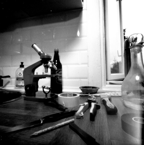 Na žodžiu gavau dovanų KIEV bac'ką ir sumeistravau pin/dėžę.Židinio nuotolis 35mm,skylė apie 0,31-0,32mm.
