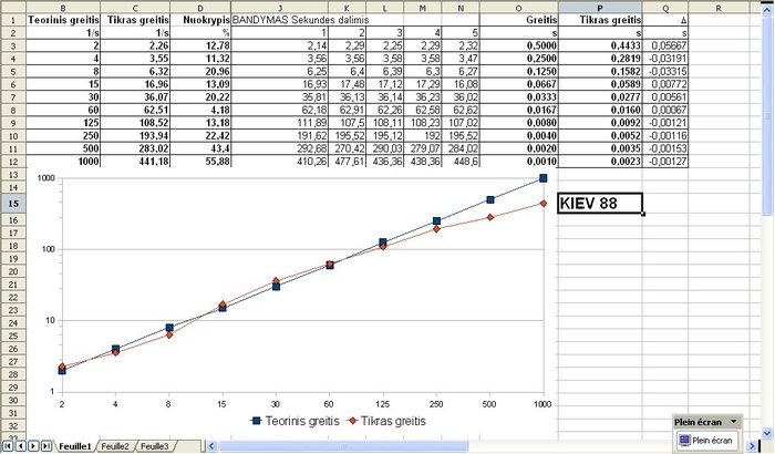 užrakto greičio matavimo super aparatu bandymą galima atlikti žymiai greičiau, nei išryškint juostelę (aišku, su visu pasiruošimu vonioje ir pan. ir t.t.), tai įjungiau juodąją dėžutę ir atlikau bandymą. Pagalvojau, iš pradžių centre, o šonus dideliais greičiais pabandysiu vėliau. Bet po to nebebandžiau, nebevertėjo. Įtarimai iš dalies pasitivirtino. Štai rezultatai: