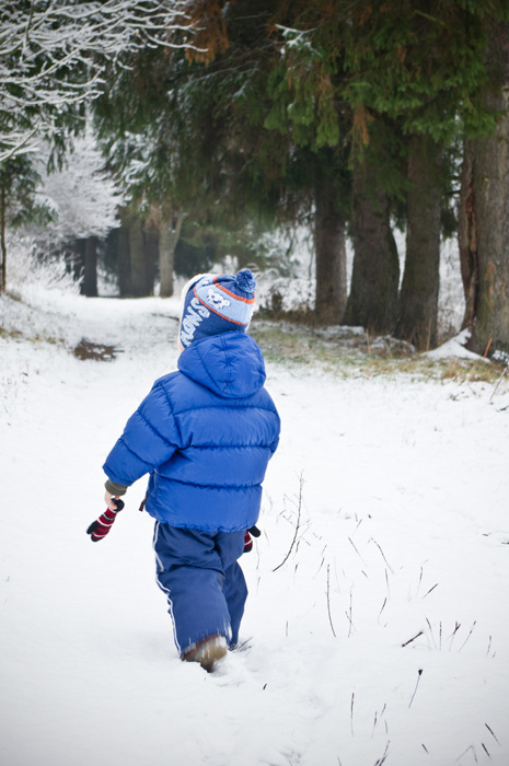 Sūnelis pernai buvo dar visai mažas, todėl kas tas sniegas,- neprisimena. Visą kelią iki miškelio sustodavo nusikrapštyti sniego, susikaupusio ant batu, ir vis klausdavo: "Kas šia?". Po gero pusvalandžio kartojimo, kad tai sniegas, pradejau nebegirdėti to paties klausimo, galvoje tik sukosi viena mintis - fotografuoti. Nors tas sniegas po poros valandų pradėjo tirpti, bet šį bei tą parsinešėm iš miško :)))