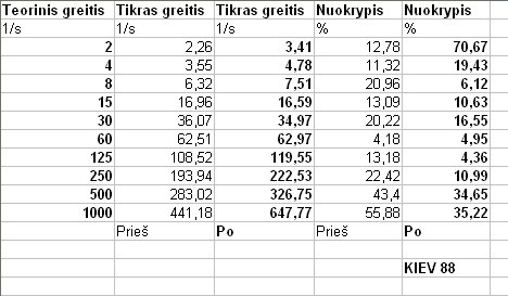 Dabar - svarbiausia: užrakto greičio bandymas. Čia reikalai yra mažų mažiausiai įdomūs. Griežtų išvadų daryti negaliu, tačiau įtariu, kad prie reguliavimo varžtelių neprisiliesta ir greičiai pakito vien dėl to, kad sutepta. Gal klystu. Gali būti, kad trumpiausių greičių nustatymai maksimalūs ir daugiau negalima ištempt, o lėtų bandyta pritempti 1/8-ąją. Gali būti ir ne...