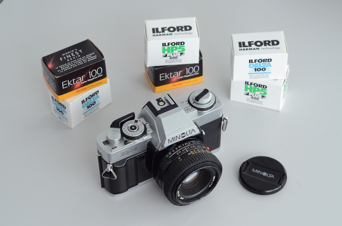 Už pirmą vietą įteiksiu maždaug 1982 m. ar vos vėliau gamintą Terminator stiliaus kampuotą fotoaparatą Minolta XG-1(n) su 50mm f/2 objektyvu ir jam dvi juosteles – spalvotą Kodak Ektar 100 ir juodai baltą Ilford Delta 100.
