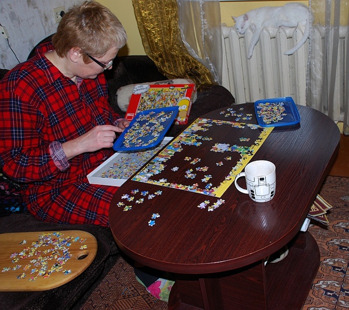 ,,Močiute, mes turim toookią dėlionę ! Net tėtė su mama keletą dienų vargo, pakol sudėjo, gal norėtum pabandyt ... ,,