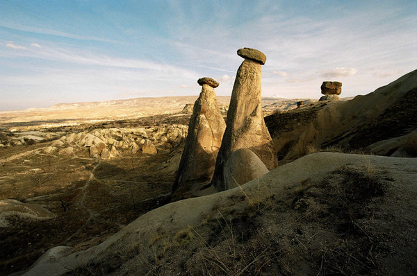 Kapadokia - rajonas centrinėje Turkijoje tarp trijų ugnikalnių. Per tūkstančius metų dėl lavos išsiveržimų iš ugnikalnių tame rajone susiformavo tufa - minkšta uoliena, kuri ir sudaro visą paviršių.