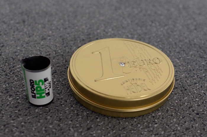 Pagamintas iš Euro šokoladukų (jau suvalgytų) dėžutės, už ją ačiū Edvardui. Daro plačiakampes fotografijas (židinio nuotolis –19mm). Juostelė, kaip visada, tinka bet kokia, kad tik tilptų.