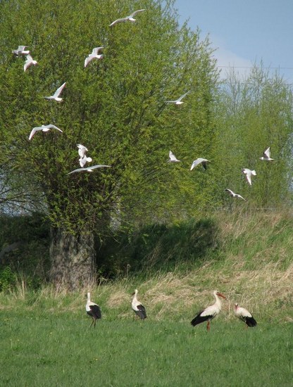 ...praeitą savaitgalį teko pabuvoti Rusnėje ir netikėtai išvydome ne tokį dažną reiškinį, kirai būriais ėmė sukti ratą virš medžių, su jais suopis dar buvo, po to netikėtai iš kažkur atsirado keli gandrai, o dar vėliau gandrų tik daugėjo, kol pritūpė pilna pieva ir išsisklaidė kirų būrys...keista ir įdomu buvo stebėti, bet taip ir likom nesupratę ar kažką gandrai stengėsi apginti ar dar kokios priežastys buvo.O kad vaizdelis buvo įspūdingas tai tikrai:) gaila, kad iš pat pradžių veiksmo nepavyko nufotografuoti:)