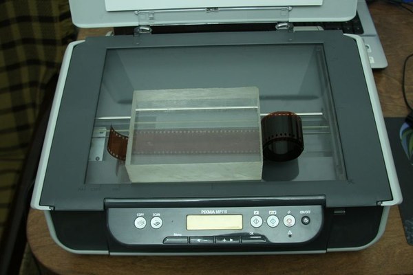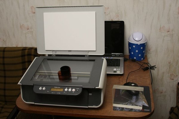Padedame juostelę ant skanerio stiklo, ir prispaudžiame stiklu, kad juostelė butų plisiglaudusi prie stiklo. Skanerio dangčio neuždarome, kad gautų šviesos. Gali ir prireikti papildomo šviesos šaltinio. Tačiau man užteko kambarinės lempos kuri švietė iš viršaus.