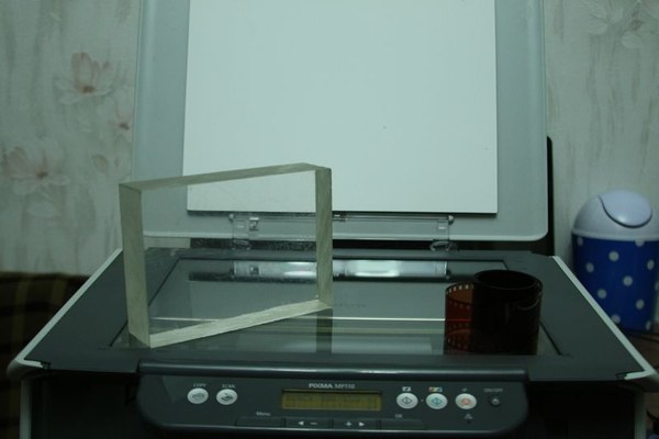 -Stiklo, ar organinio stiklo. Geriausia, kad butų sunkus. Kai jis yra sunkus, tada juostelę prispaudžia vienodai prie skanerio stiklo. Tačiau jei juostelė sukarpyta, ir išlyginta tai gali ir neprireikti sunkaus stiklo :)