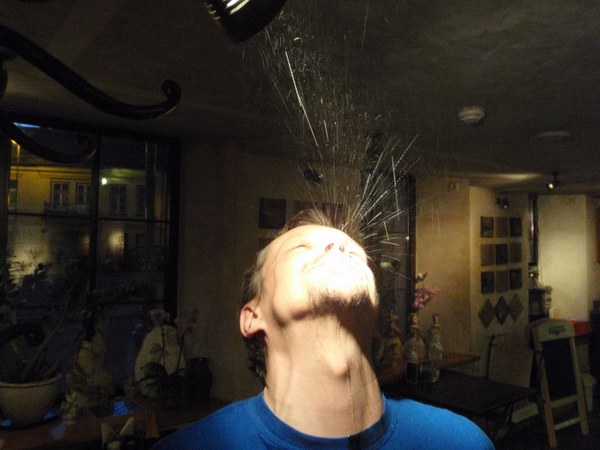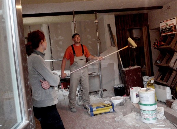 O pasirodo lašas atskriejo nuo statybininko šluotos, kuria jis voliojo ne durnių o lubas.