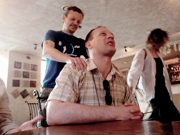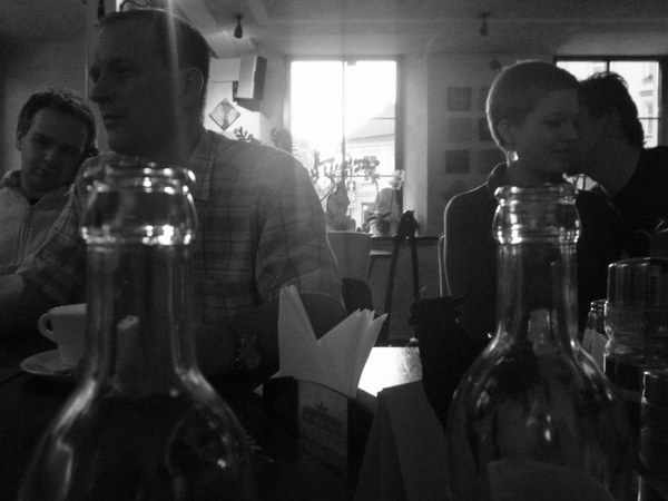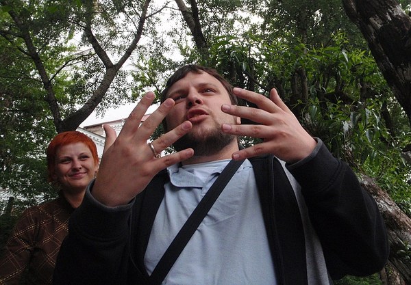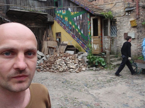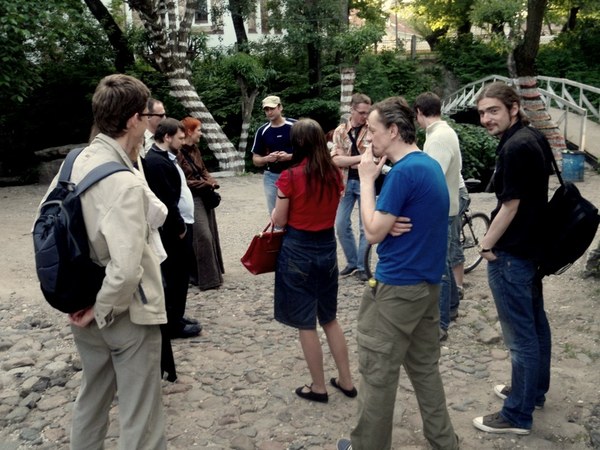 Paaiškėjo ,kažkaip netyčia, nors tai jau seniai buvo aišku,kad Galeros durys užrakintos ir niekas jų mums neatidarys. Nu va blemba byvi -einu ieškoti rakto per Užupio žmones. Pirmą sutinku Darių Plikutį. Labas Dariau, bla bla bla - ne rakto jis neturi:( bet žino ežeriuką, kur kur galima ramiai išsimaudyti ir plaukioti, bo bomžai ir chuliganai ten dar mazuto neprileido)