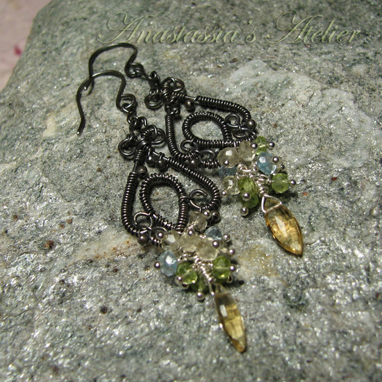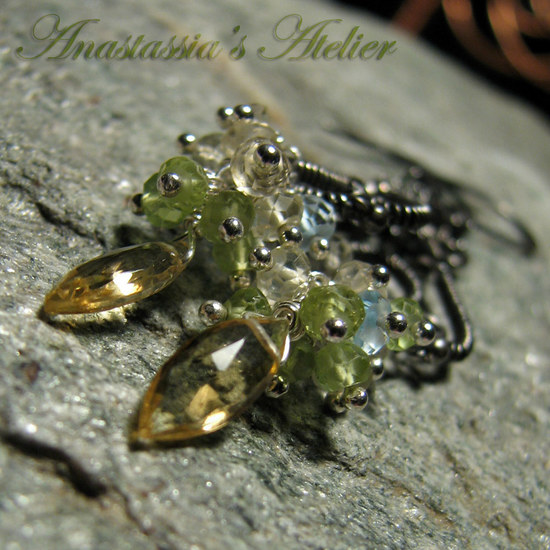 Citrininis bei dangaus mėlio Topazas, žaliųjų citrinų atspalvio Peridotas bei aukso medaus Citrinas puikuojasi sidabro glėbyje!