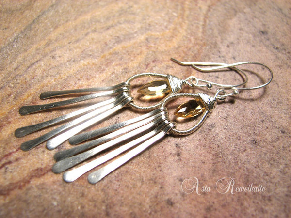 Pirmiausia suformavau lašo formą bei avyniojau plonyte sidabro vielute, po to papuošiau nuostabiai žėrinčiu auksiniu Citrinu.