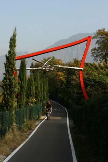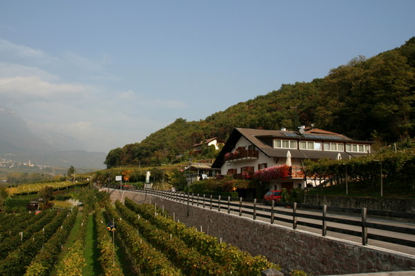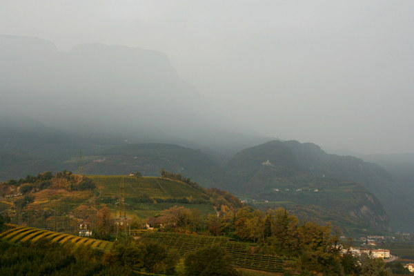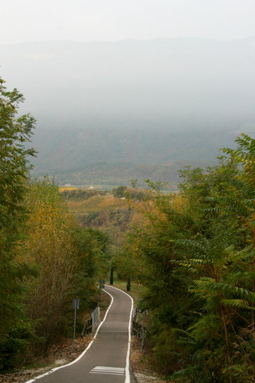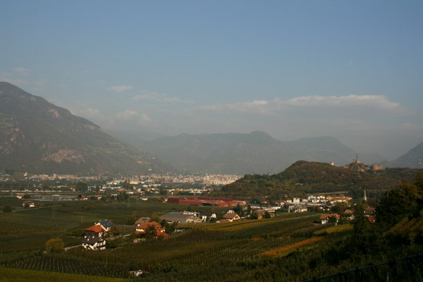 Vo, jau begrįžtant tolumoje matosi Bolzano. Užtenka pusvalandžio jį pasiekti nuo tos vietos kur fotografavau. Juk kaip pasileidi, tai ir skrieji visu greičiu su dviračiu, nes vis į pakalnėlę ir į pakalnėlę.
