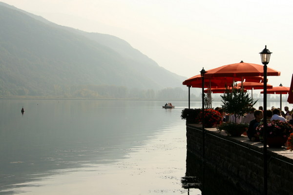 Trumpa stotelė ties lauko kavine prie Kaldaro ežero.