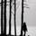 Grazus kontrastas tu medziu siluetu su zmogum.