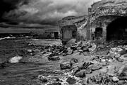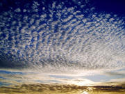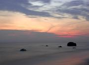 Debesys, jūra, paukščiai, saulėlydis...