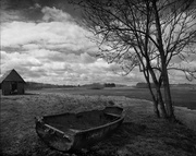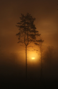 Trys vyrai.Šuo.Rūkas.