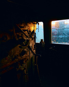 saulėlydis pro seno garvežio langus