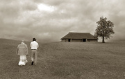 Portretas su grėbliu ir višta