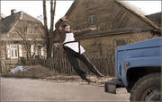 Tema - mėsininko pasiskraidymai besivejant vištą...