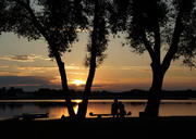 su paukščiais ir siluetu
