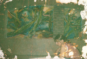 Gervė prie šamo (tapyba ant sienos, pavadinimu "povandeninis pasaulis", to paties autoriaus)