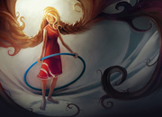 Little gerl in a red dress in a blue hoop  Fotografijos reitingas (5)
