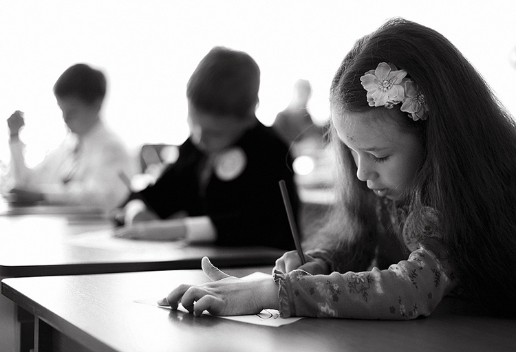 trecia nuotrauka - mokytoja duoda baisaus zuikio paveiksliuka vienai mergaitei, taciau kitai neduoda nieko, nors ji akivaizdziai jo nori - diskriminacija ir korupcija