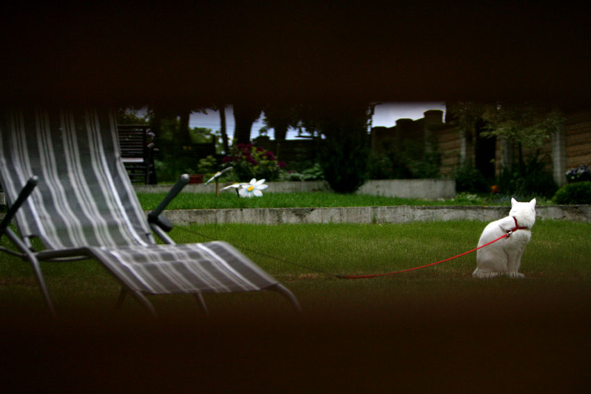 Dievulėliau, su raudonu pavadėliu:))) turbūt čia per tvorą fotkinta?:)