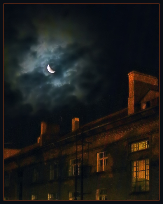 Mėnulis pro debesis lyg dievybės krūtis , namuk ,glamonėk ją savo langinėmis :)-4