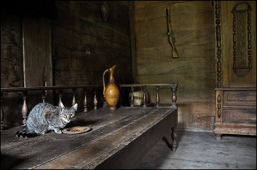 Superinę nuotaiką ir krašto dvasią sudaro to katino ėdimo vieta, spalvos ir šautuvas ant sienos, nors aplink kaip ir viskas ramu. Puiku.