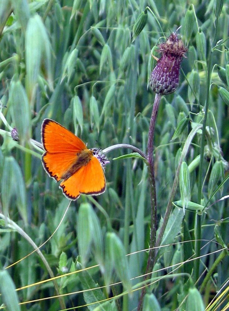 Ugninis auksinukas - Lycaena virgaureae L. Per sparnus išplaukes žolės stiebas gadina visą foto..:(