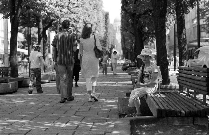sita mergaite tiesiog nutykojau. kai ja pamaciau ramiai issitraukiau fotoaparata uzsidejau reikiama objektyva atsisedau ant suoliuko ir palaukiau kol ji atsisuks. ilford 50 panf