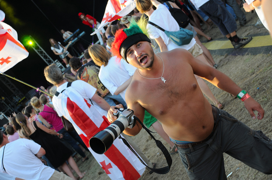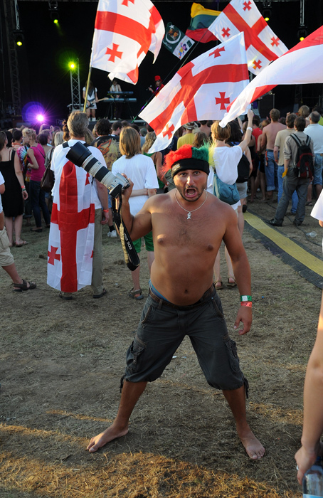8. Pats personazas, kad ir svikrksta rankoj vietoj kameros laikytu-nera skirtumo, nekeltu emociju..Pagalvok, kaip klouno grymasos atrodo santykyje su gruzijos veliavom antram plane. Silpna grandis, siuo atveju, autorius fotografijos (pora metru salin paejus, veliavu jau nesimatytu turbut antram plane). Sekmes kuryboj