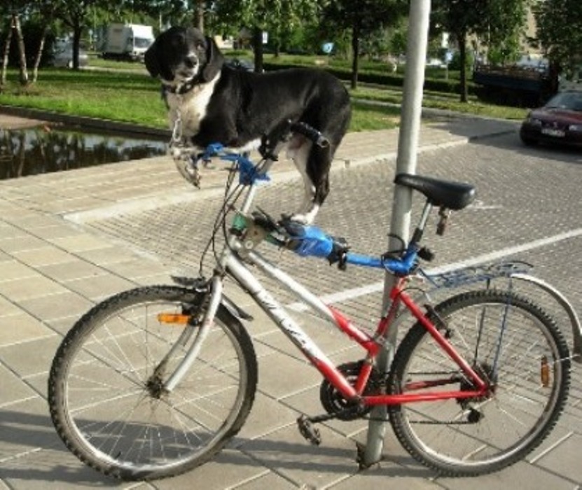 šuo, gamta, dviratis, kantrybė
