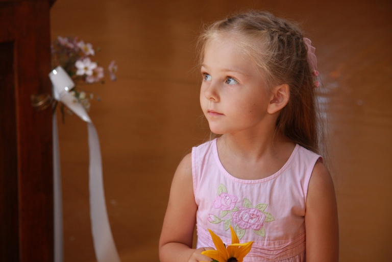 gerai ta puokštelė tolumoje atrodo, o vat mergytės rankytės su gėlyte tai gal kiek gaila. Atspalvis malonus toks mergaitiškas, kaip tik šiai gražuoliai tinkamas