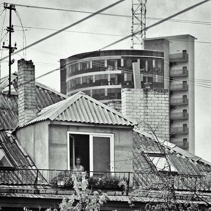 geras kontrastas tarp daugiaaukščio naujų statybų ir šio mūrinuko senuko:)