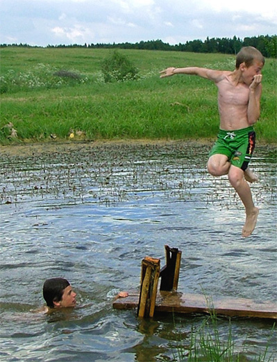 ...inspūdis,kad kris ten,nuo kur ir šoko... :)