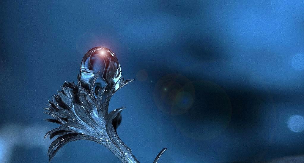 fonas nerealus šiaip jau, spalva šalta, bet tinkama visam tam, blikai ir taškiukai irgi labai tinka čia, tik vat gal kiek nelabai dėkingai įmontuotas pagrindinis objektas-žoliukas ar koks ten daiktas:) šiaip visumoj tai neblogai