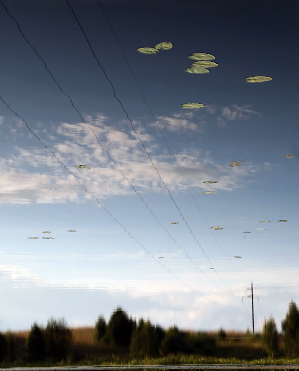 Man čia patiko lelijos lapai laidų ir dangaus fone...