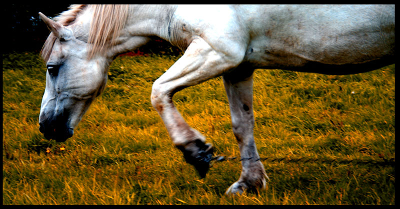 Vargšas arklys, pririštas.