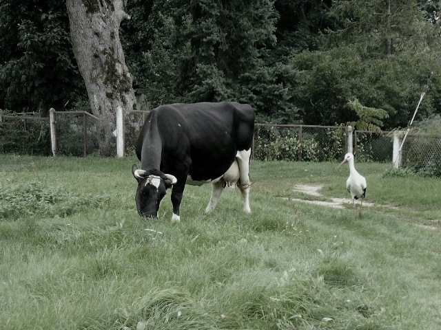 Primena filmuką "karvė ir viščiukas":)bet čia tiktų labiau karvė ir gandriukas:)+