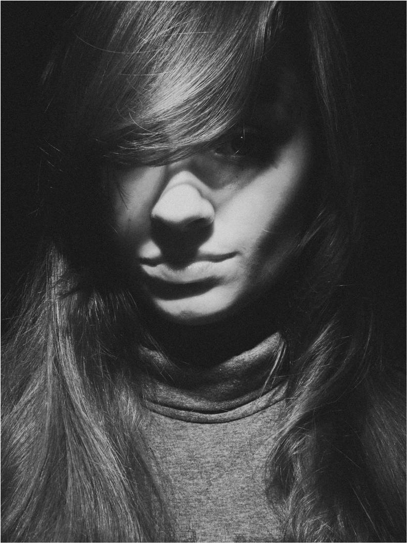 tokie astrus seseliai mane veza, bet va kazkkas nekimba - kal blikiuko akyje stipresnio norisi...o jei pakadravus iki kvadrato? gal demesys susikauptu i veideli, nes tas "golfas" kazko yptaingo fotografijai nepriduoda, o ir seseliai tie skanieji baigiais sulig smakru. Siulyciau dar paeksperimentuot islaikant lupu ir akiu ir siaip veido konturus (seseliuose neprarandant detaliu, be kuriu vaizdas ploksteja)... bet siaip kazkuo traukia tad ir vertinu i teigiama puse, bei laukiu daugiau eksperimentu ;)