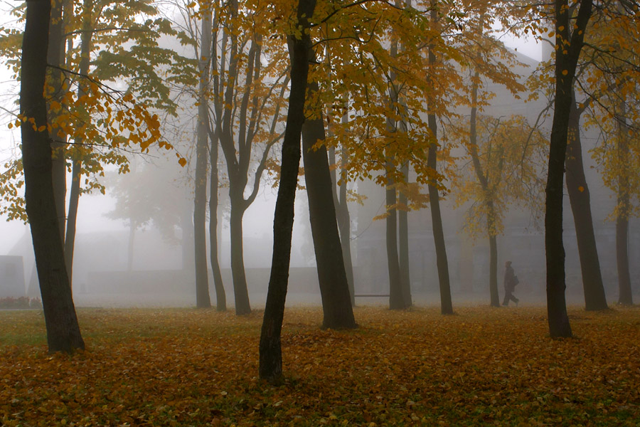 koks geltonas rytas :) Puikus ruduo gavosi. Ir žmogeliukas ties rūko riba - labai vietoje.